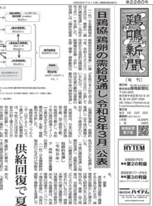 2026年4月9日 / 最終更新日時 : 2026年4月9日 keimei 統計 統計情報を更新しました 【ひなえ付け羽数、輸入初生ひな 等】 ■ ひなえ付け羽数の推移【PDF形式】(2026.4.9更新) 【鶏卵生産量】 ■ 鶏卵生産量の推移【PDF形式】(2026.4.9更新) ■ 県別の鶏卵生産量【PDF形式】(2026.4.9更新)