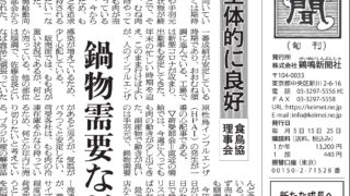 2023年12月5日号の内容は以下の通りです。詳しくは本紙、または電子版をお読みください。 【1面】◎荷動きは全体的に良好 食鳥協理事会 鍋物需要などに期待◎採卵鶏農場でHPAI続く 4事例で約18万羽が殺処分に◎鶏卵需 … 続きを読む 2023年12月15日号を発行しました